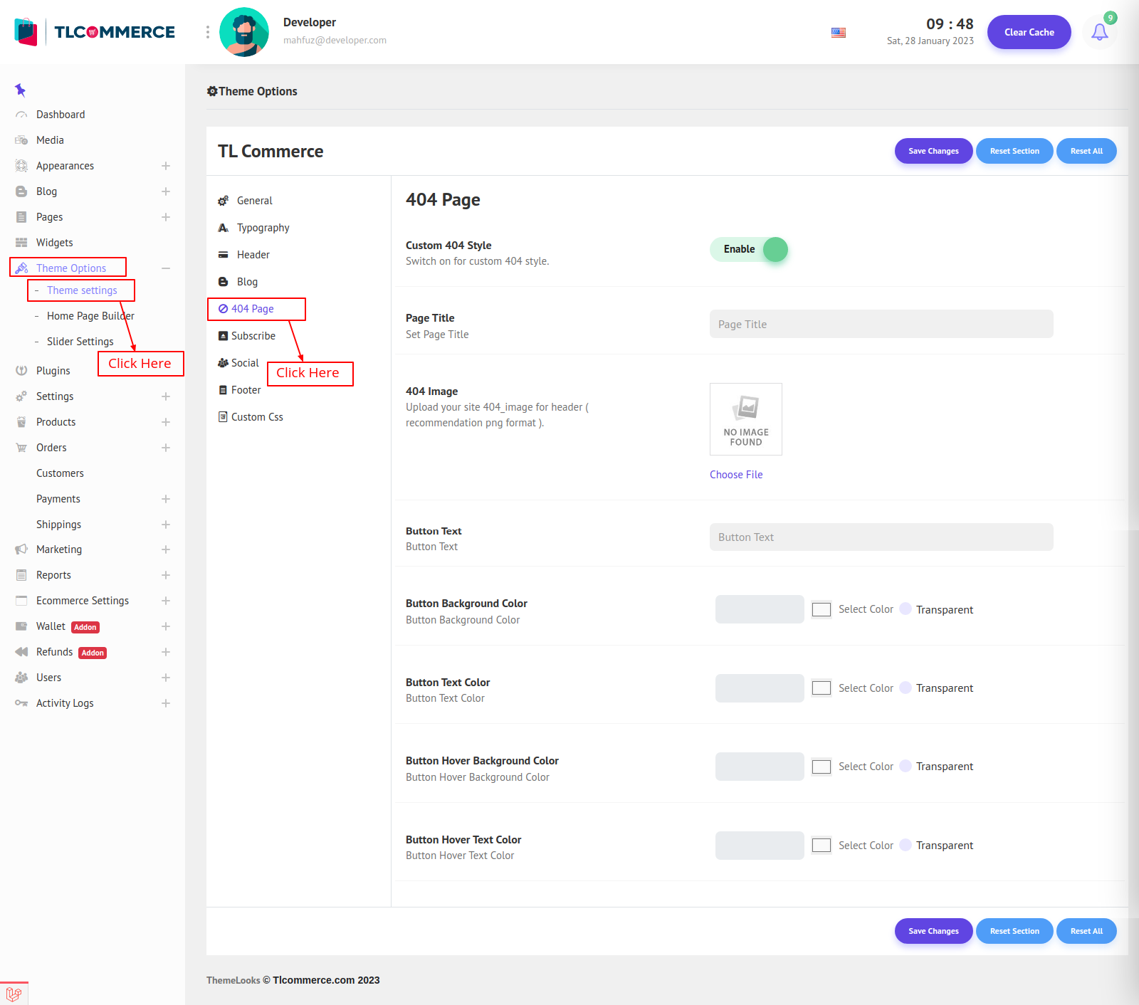 Click Save Changes to save theme options. Click Reset Section to reset only this section. Click Reset All to reset all theme options.