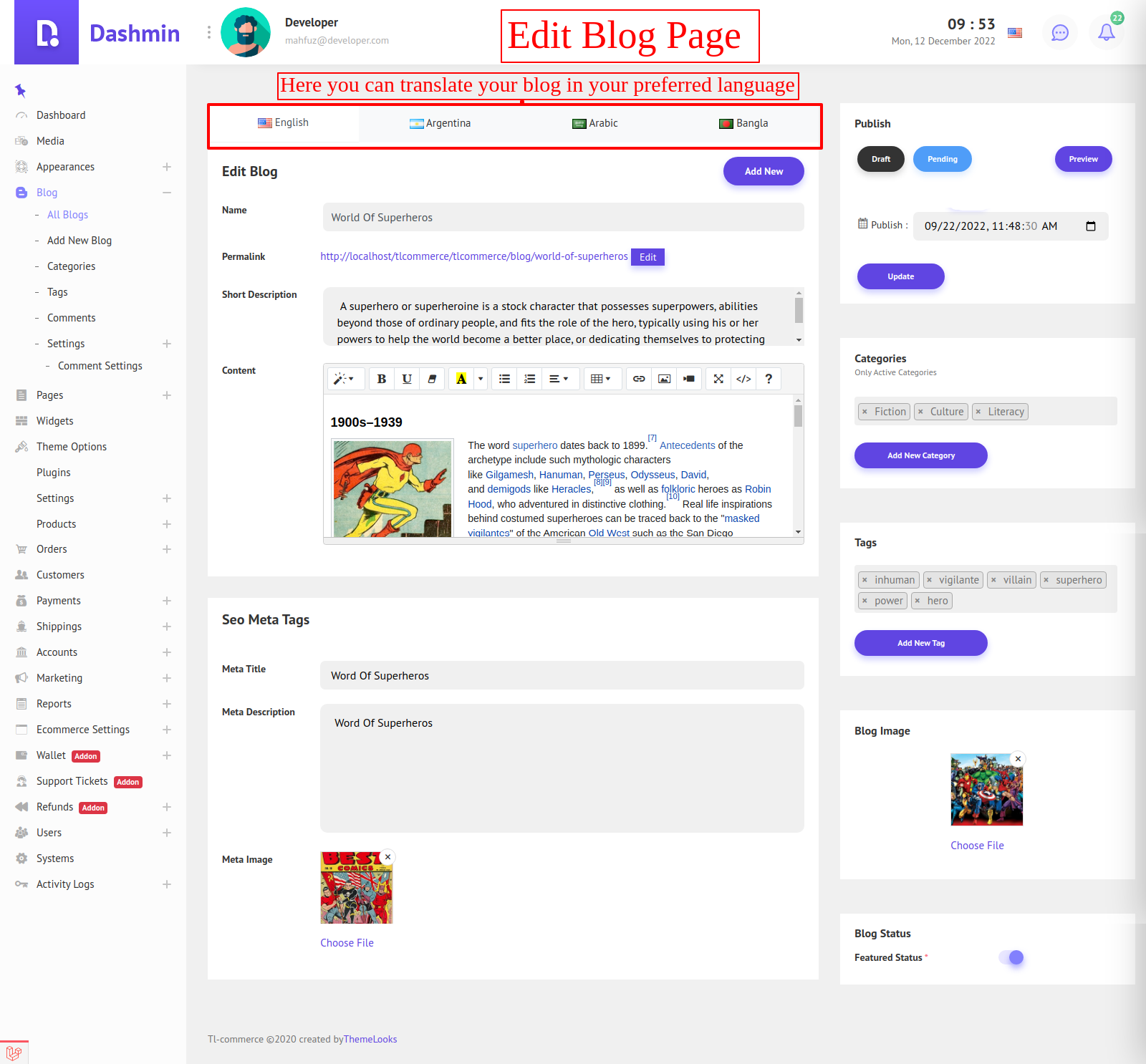 After Clicking the Edit Button You Will be Redirected to the Edit Page Where You Can Edit Your Blog And Save It. You can also translate your blog into another language.