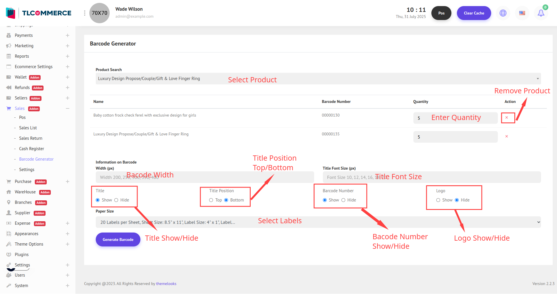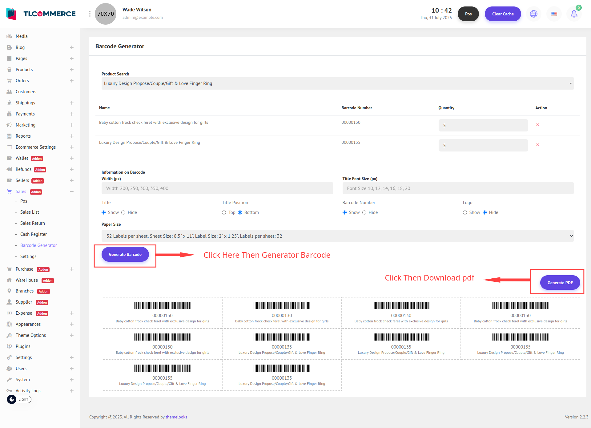 To view the Barcode Generator, navigate to: Sales → Barcode Generator.