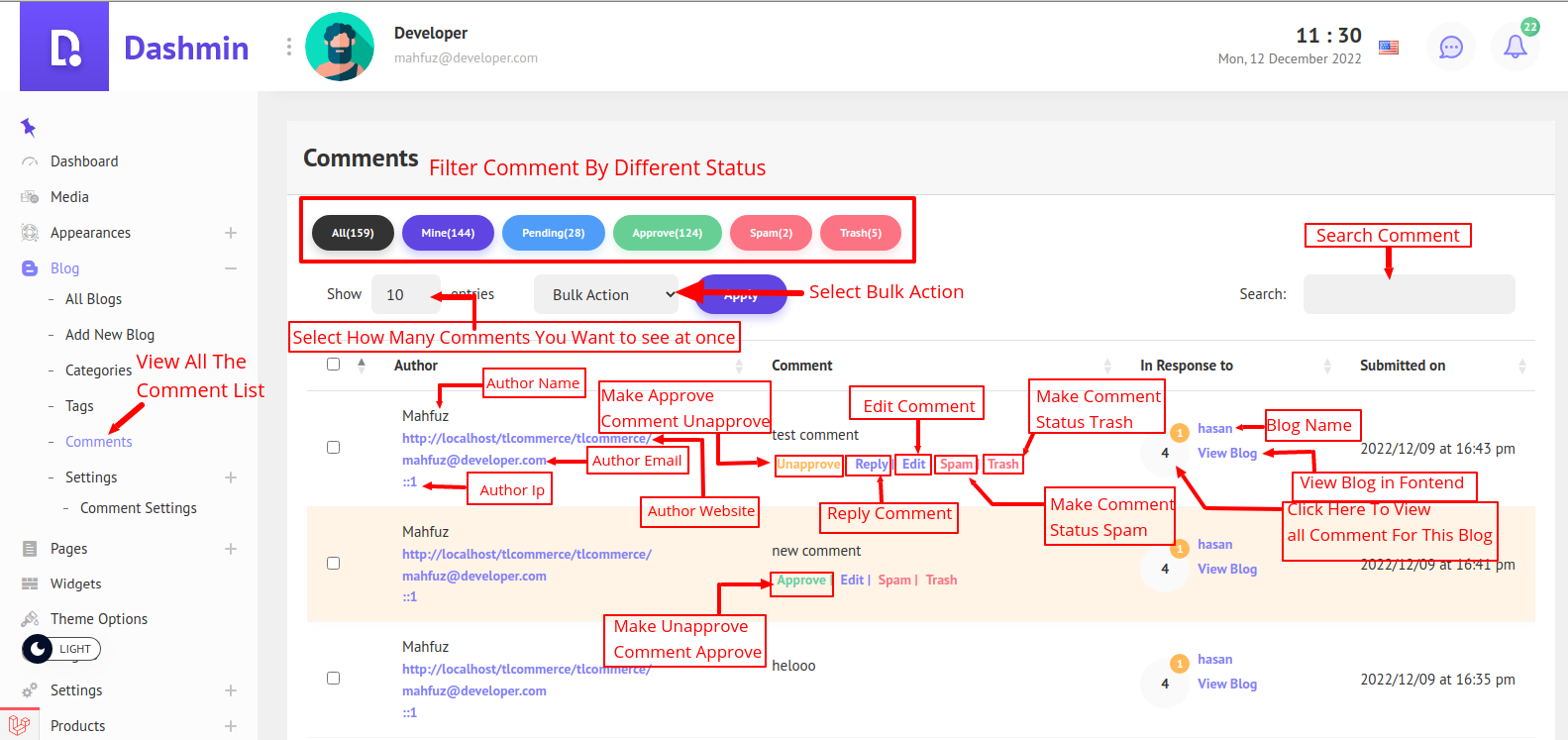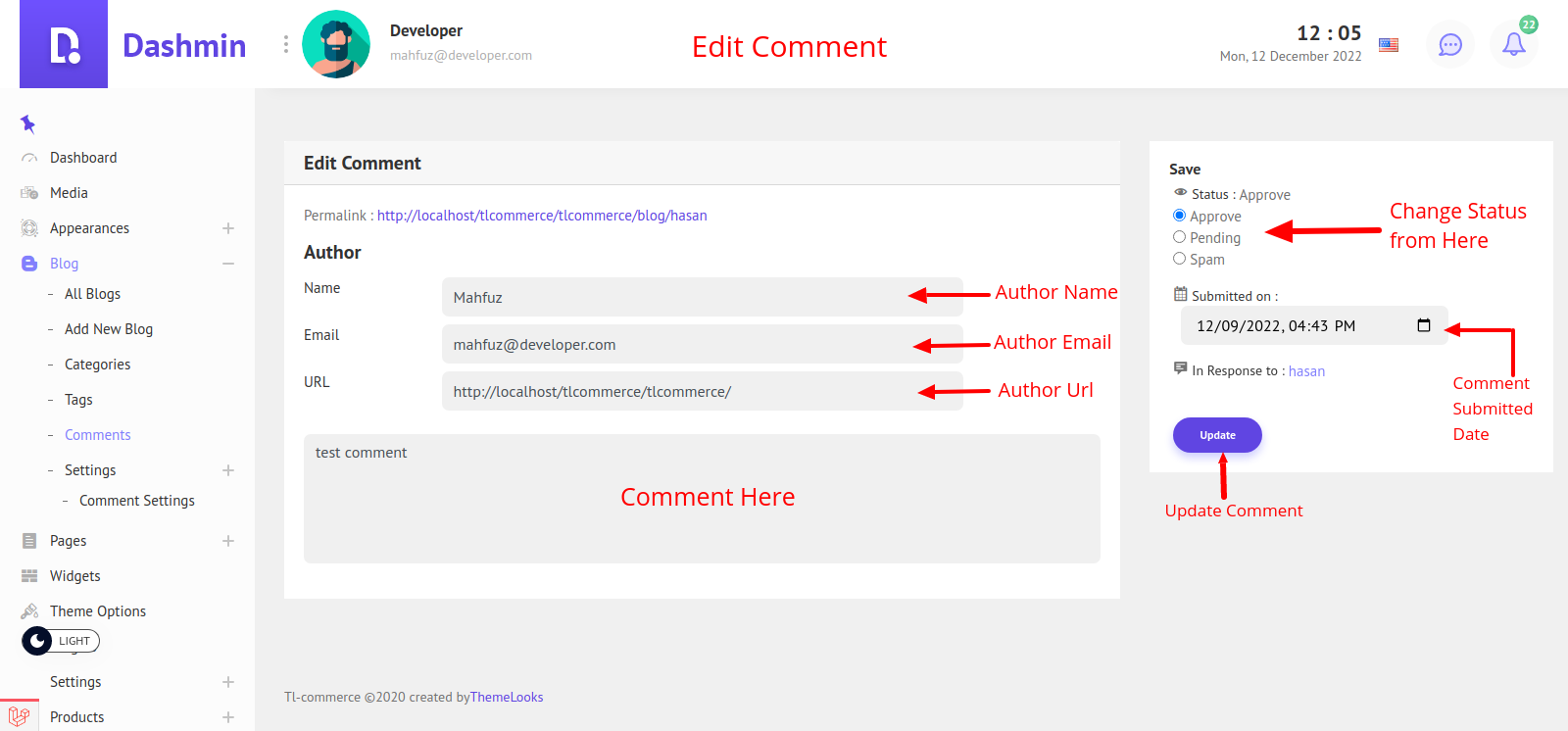 Click the "Edit" Link You Will Be Redirected To the Comment Edit Page.
