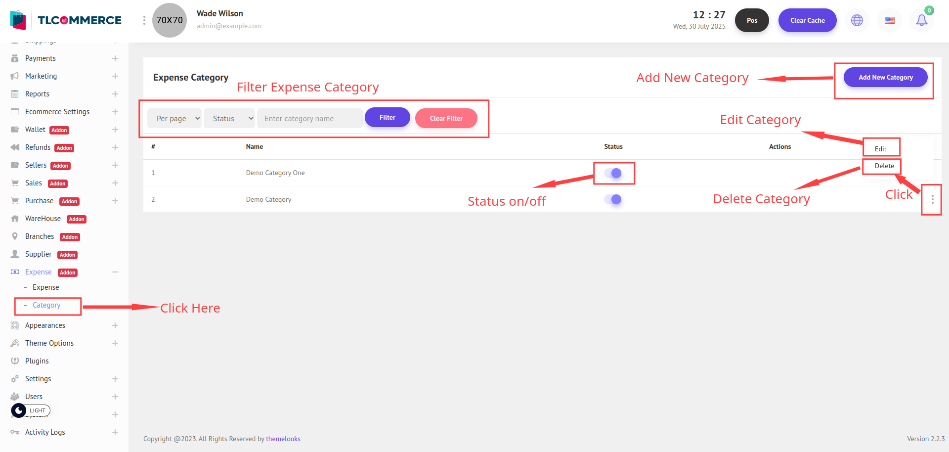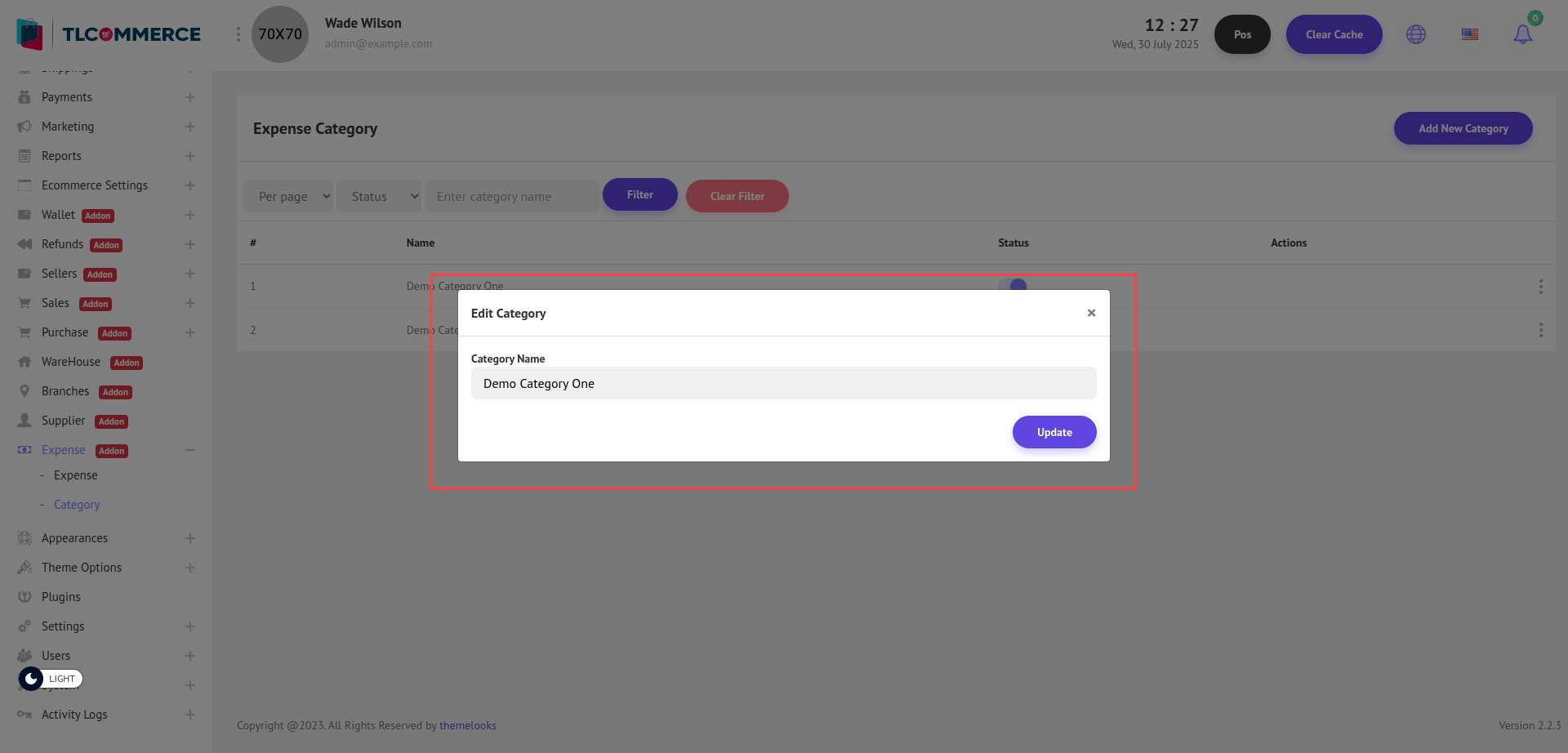 To edit an existing category, simply click the Edit button from the list to open the pop-up modal and update the necessary information. And also can delete a category by clicking the Delete link.