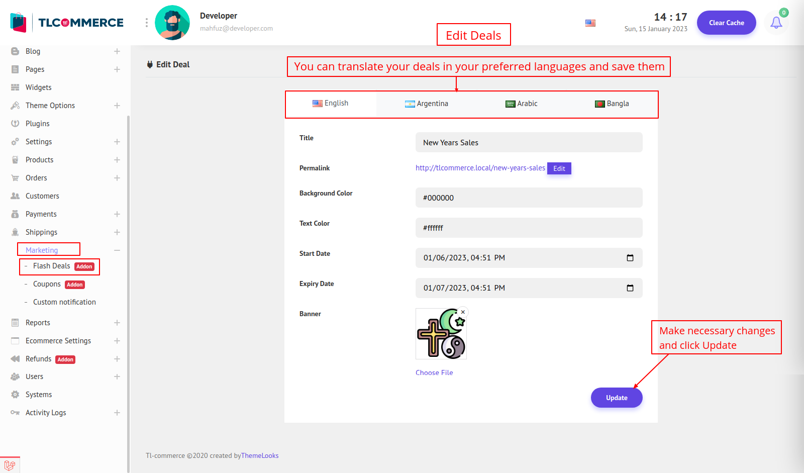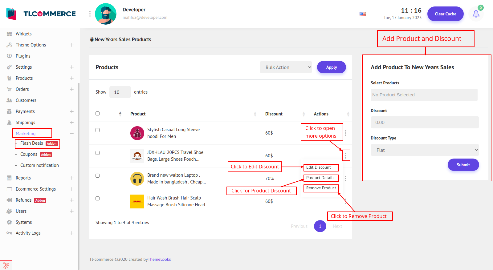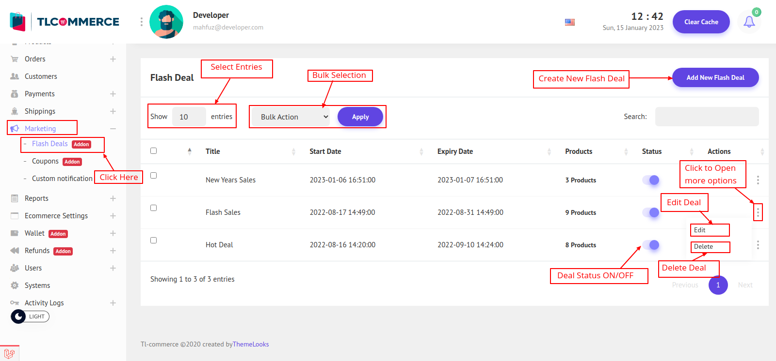 After the activation, go to Marketing > Flash Deals. You will be redirected to the flash deal page.