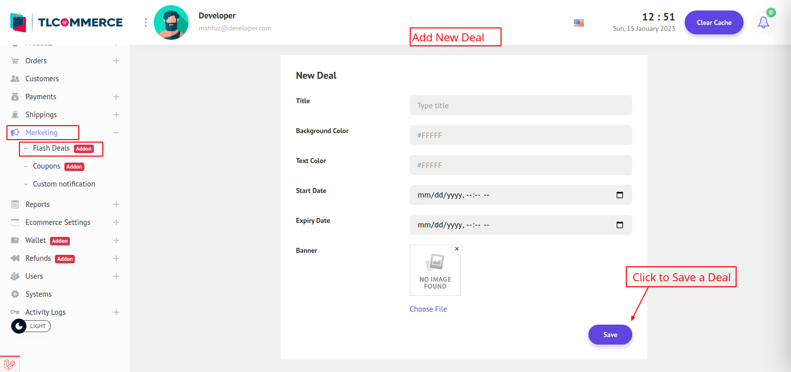 To create a new deal click Add New Flash Deal. You will be on add new deal page.