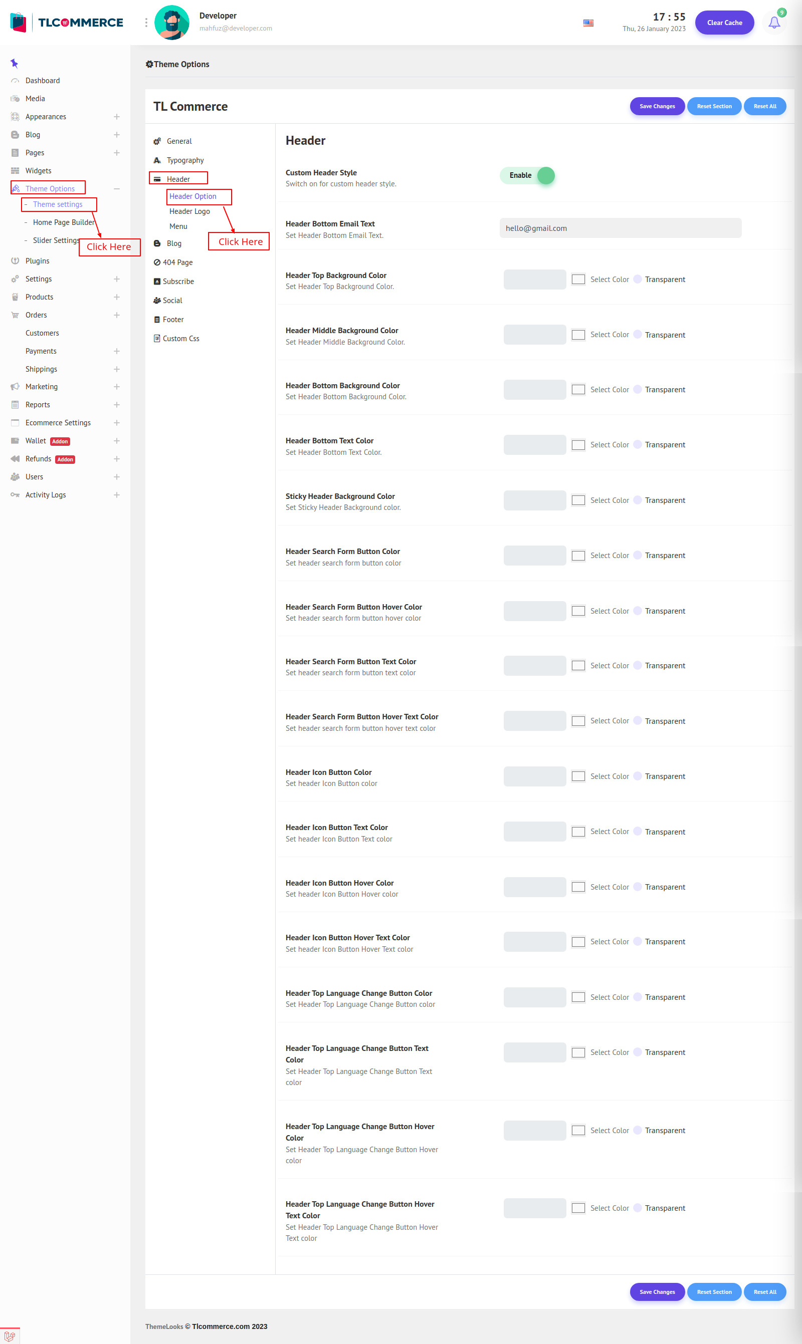 Click Save Changes to save theme options. Click Reset Section to reset only this section. Click Reset All to reset all theme options.