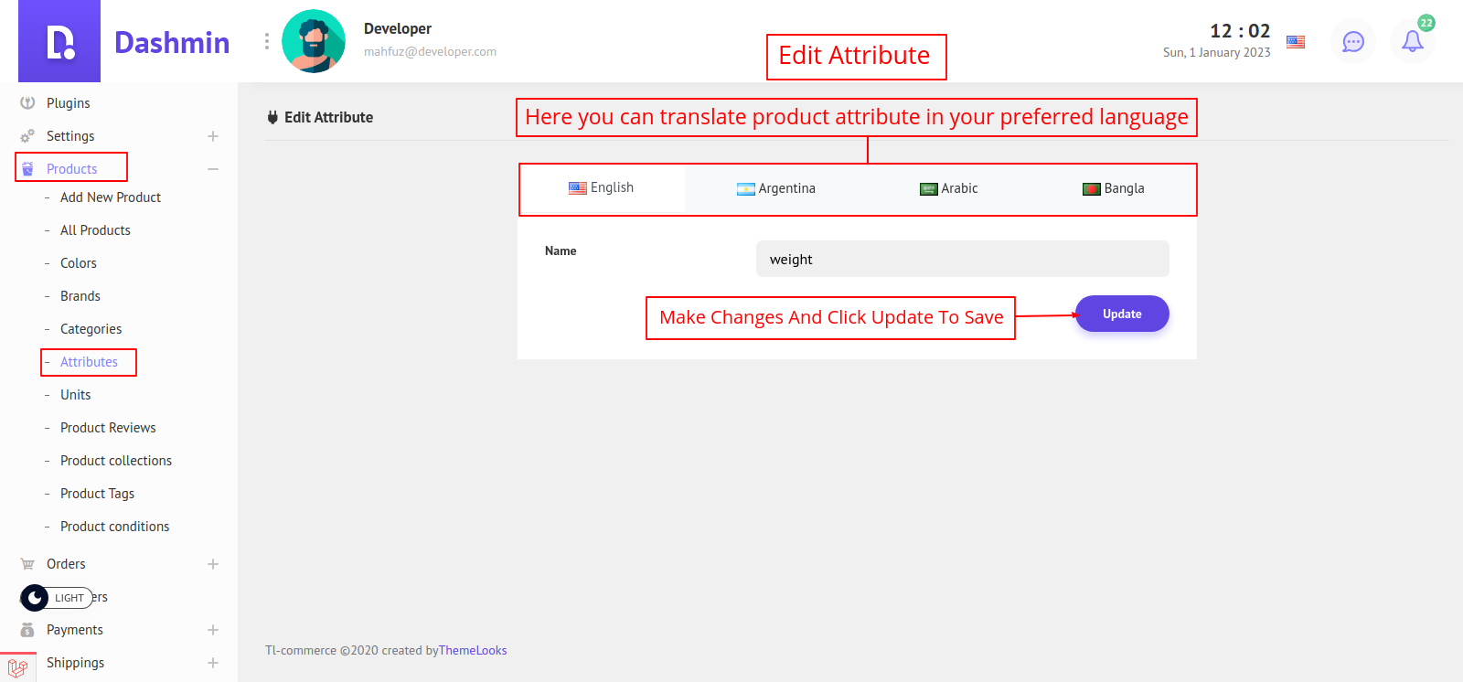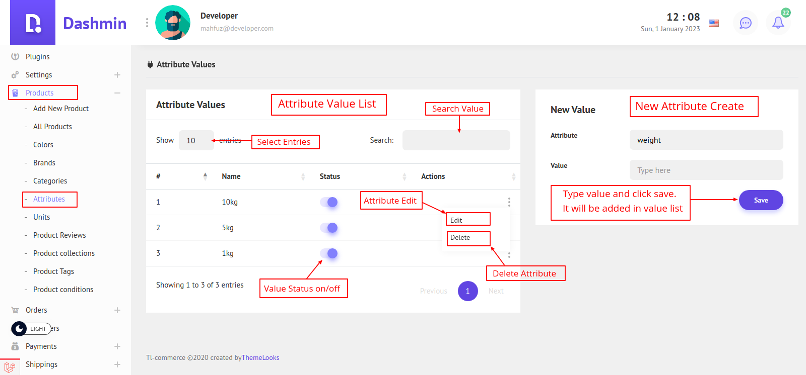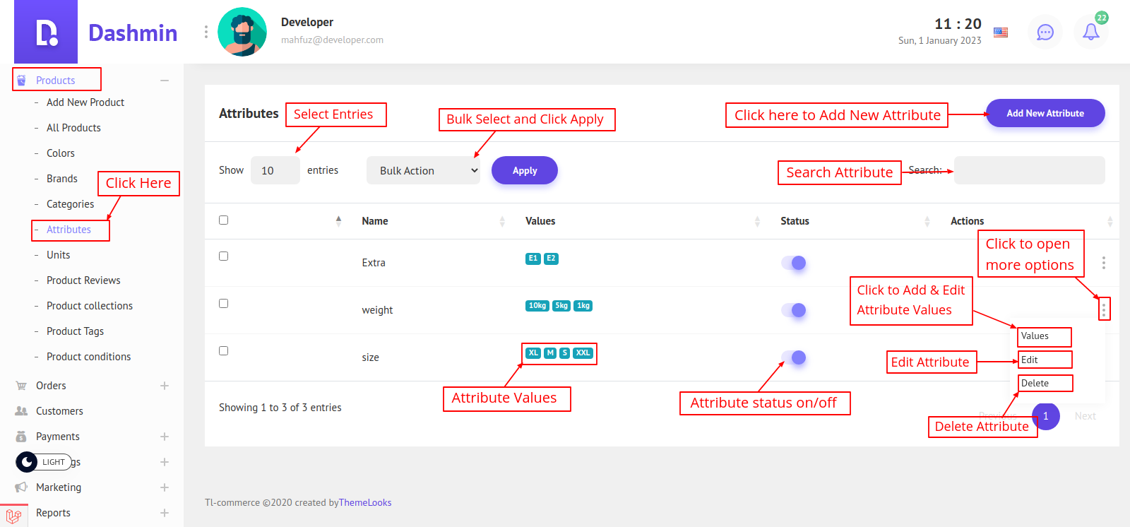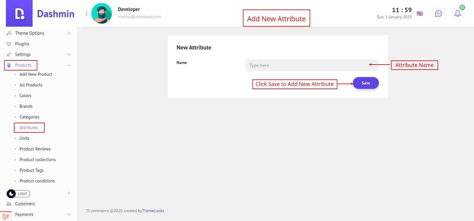 If you want to create a new attribute click on Add New Attribute on the top. It will redirect you to add new attribute page.