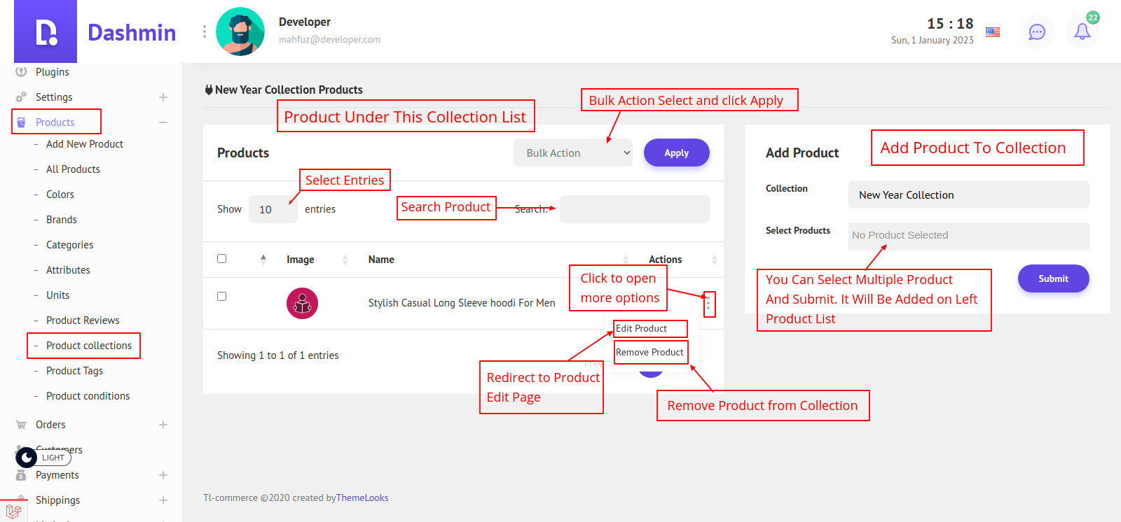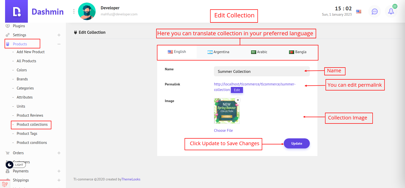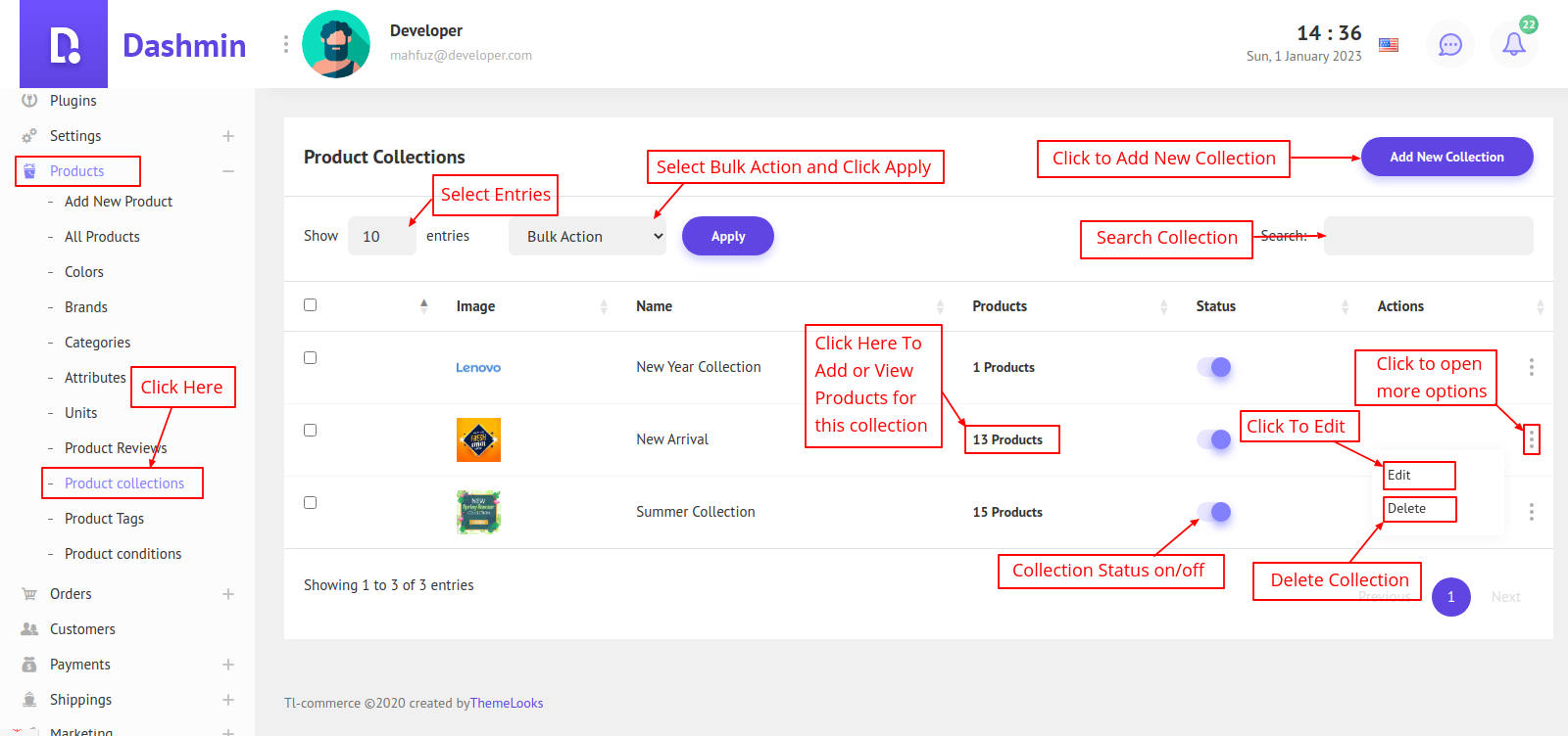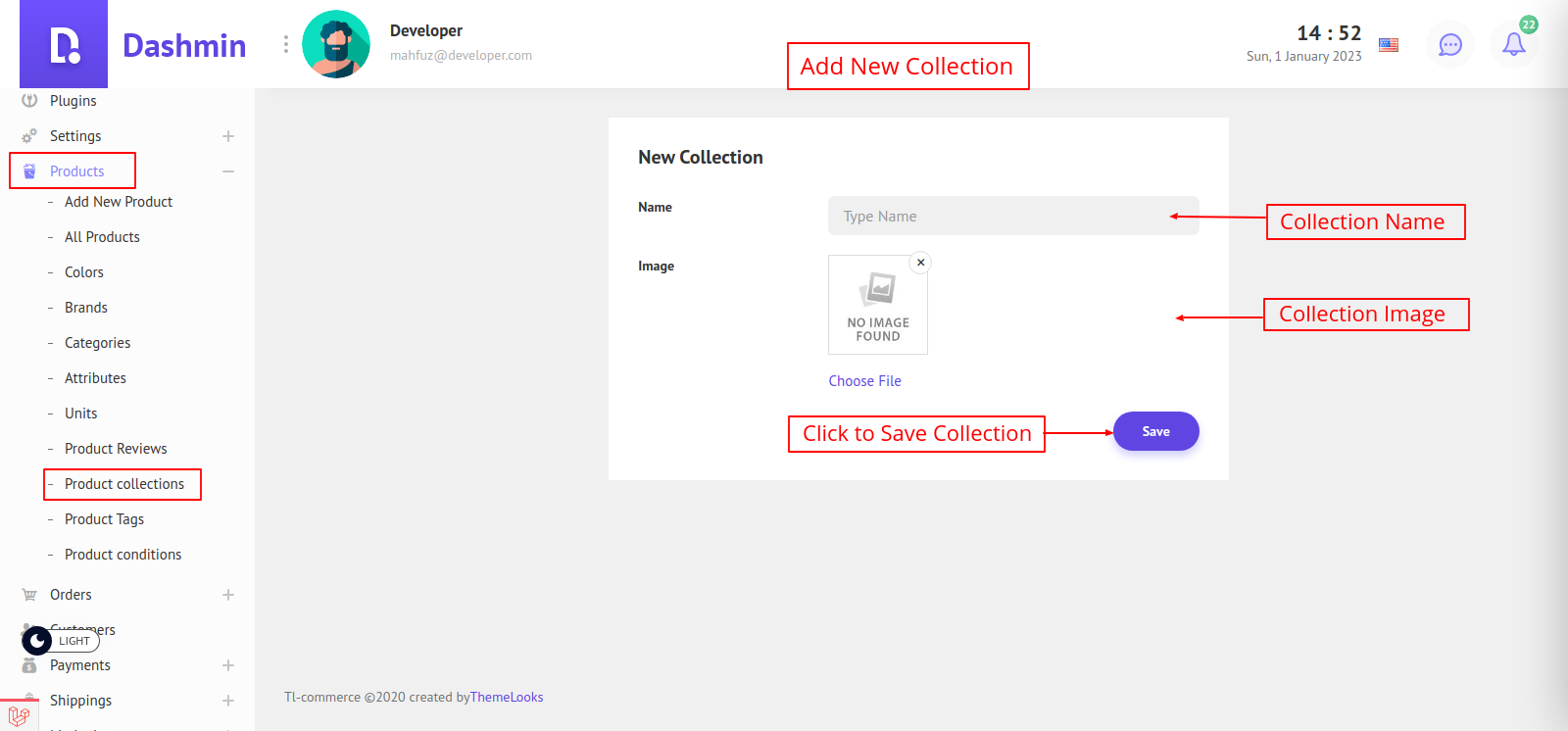 If you want to create a new collection click on Add New Collection on the top. It will redirect you to add new collection page.