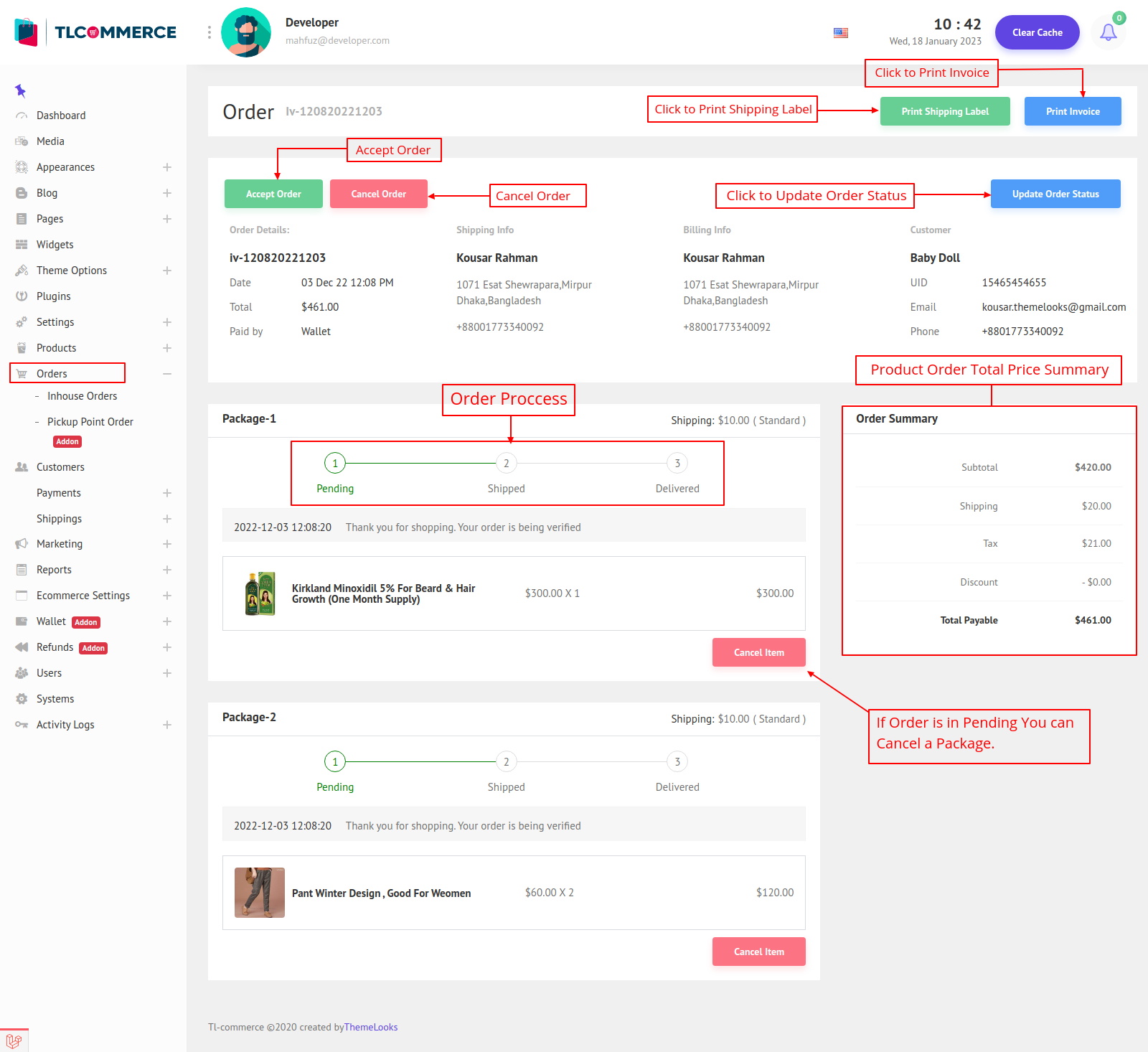 An important note, whenever you change the order status and update it, the customer will get notifications and also emails about the changes. And the comment you set will also go to the customer's notifications or emails.