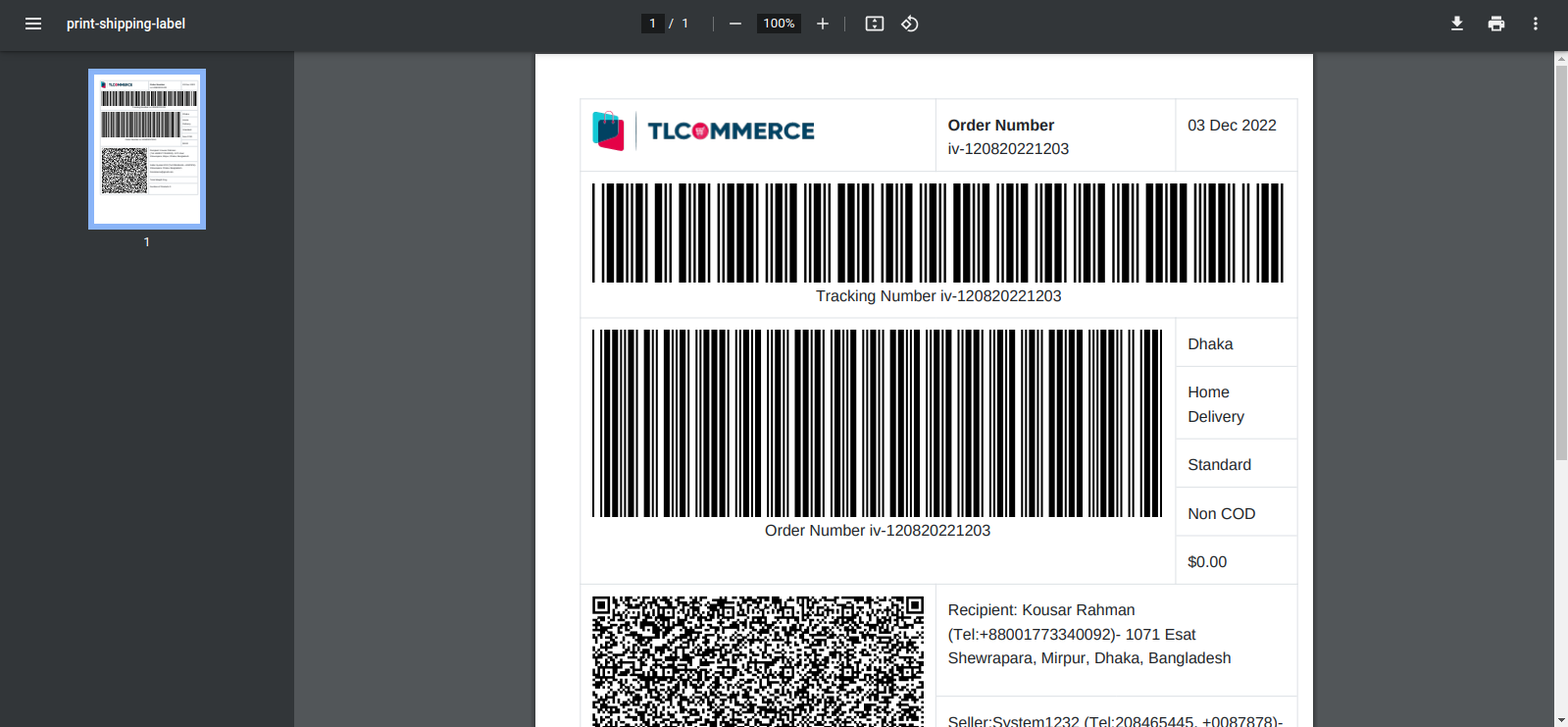 - Print Shipping Label, click on this button, and a modal will appear.