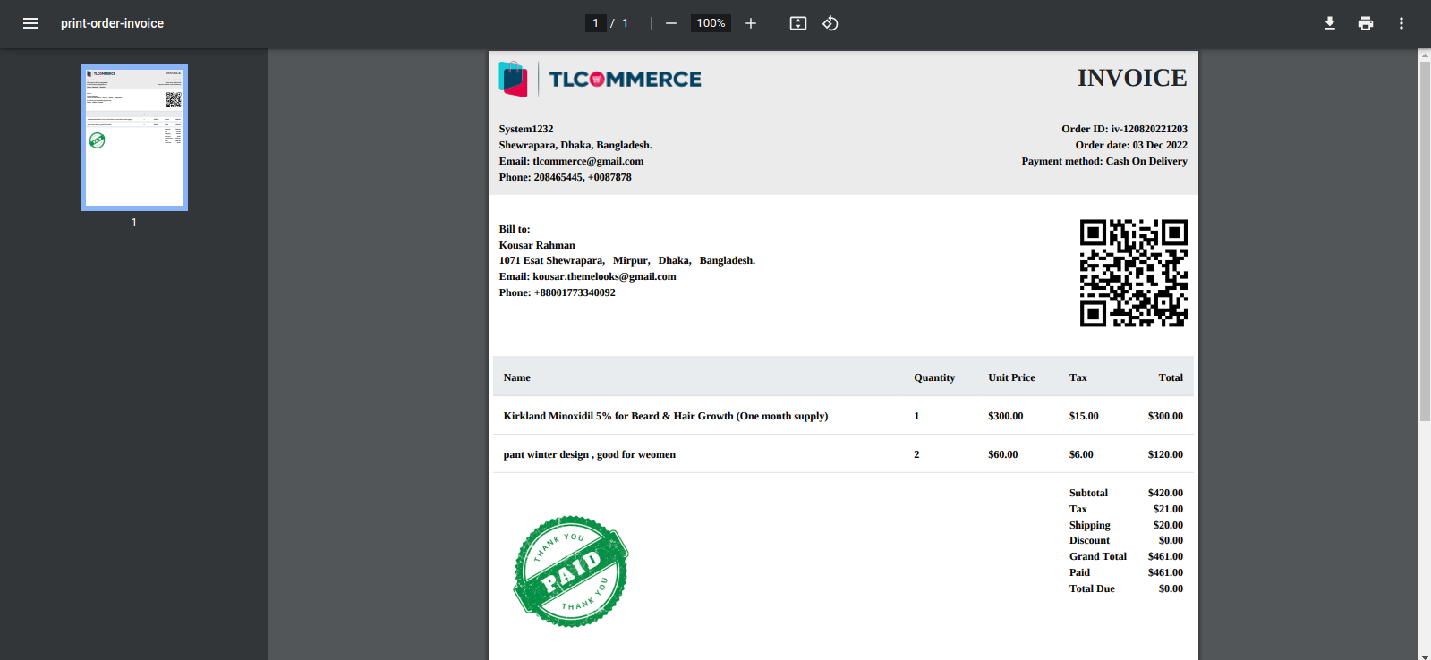 - Print Invoice, click on this button, and a modal similar to shipping will appear. There you can select which product invoice you want or all product invoice. To preview the invoice click the Preview button. You will be redirected to the preview page.