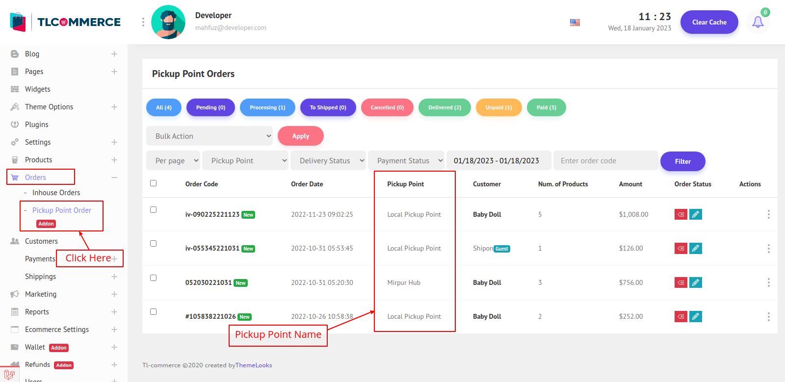 Also to find the Pickup Point Orders, follow Orders > Pickup Point Orders. You will be redirected to the pickup point order page.