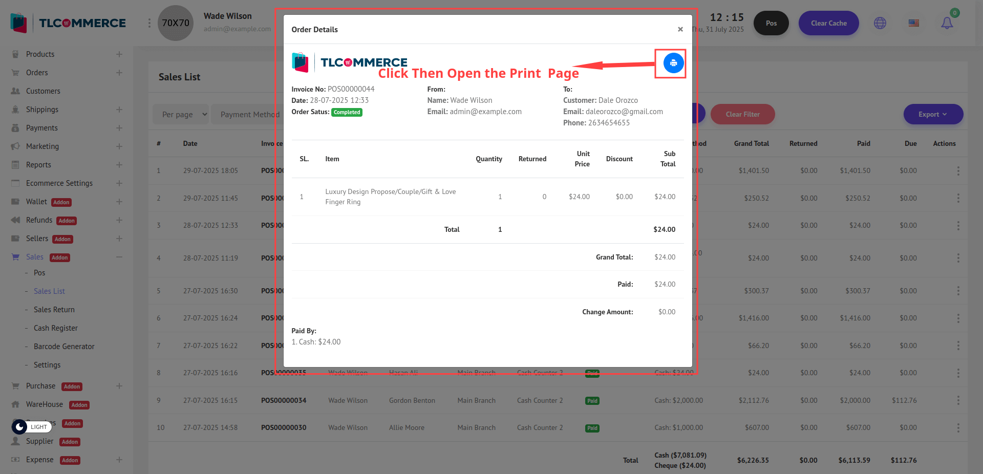 Additionally, clicking on View or the Invoice ID will open a detailed pop-up window with the full sales information.