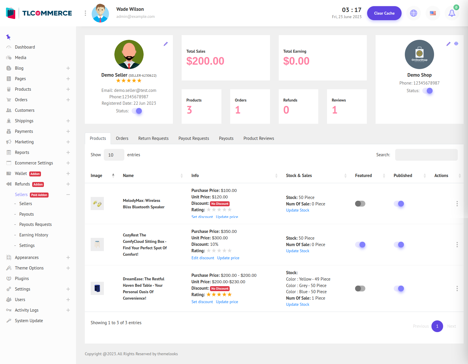 From here you can find all the details about the seller. And also can update seller or seller shop information.