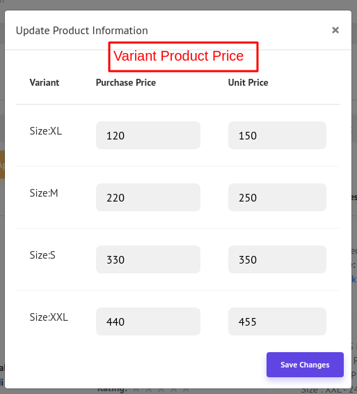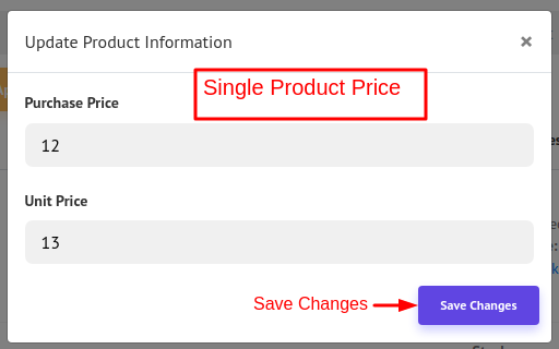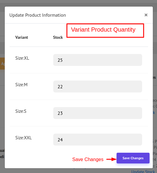 If you click Update Stock a model will appear and you can update product stock and save it.
