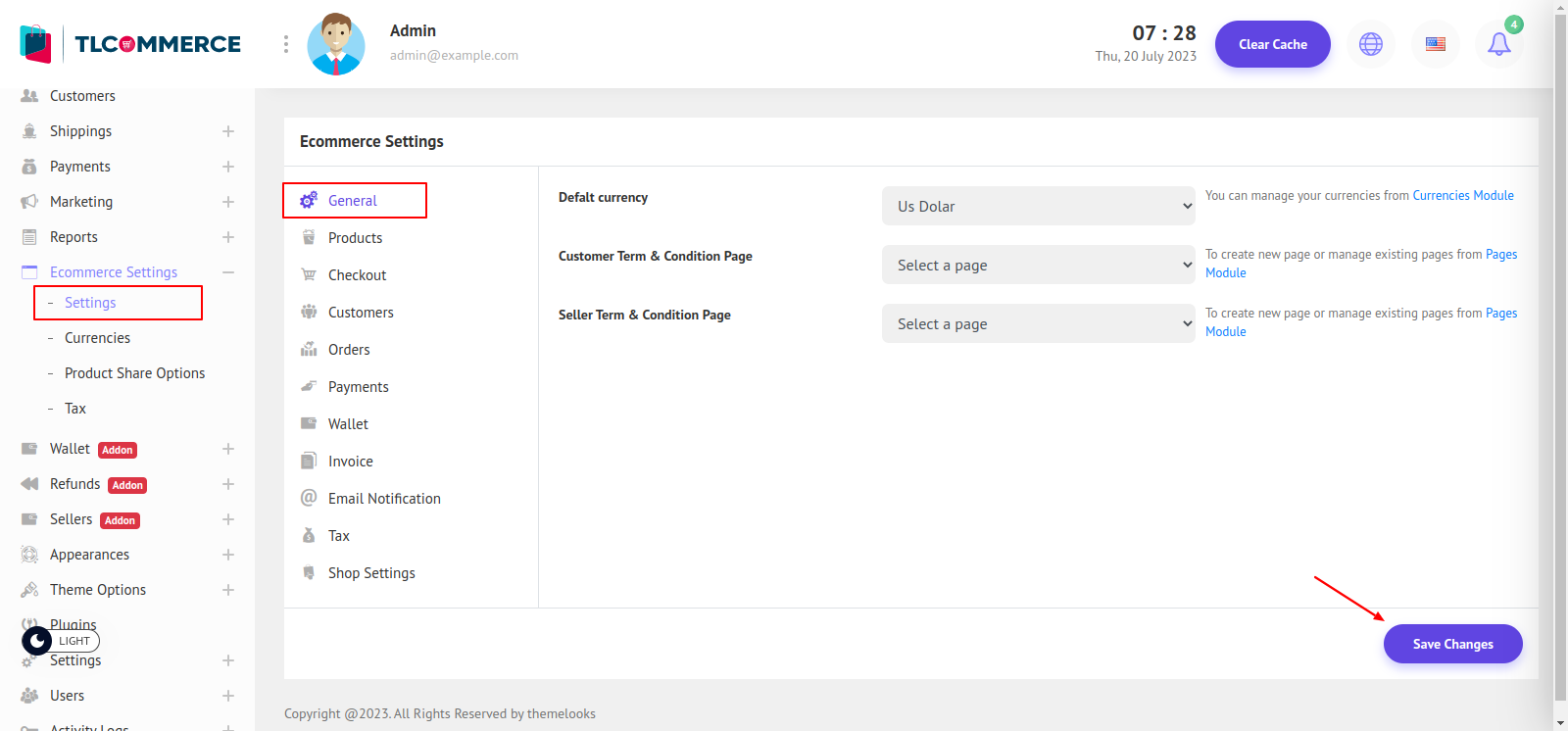 Default Currency - Here you can set the default currency for your system.