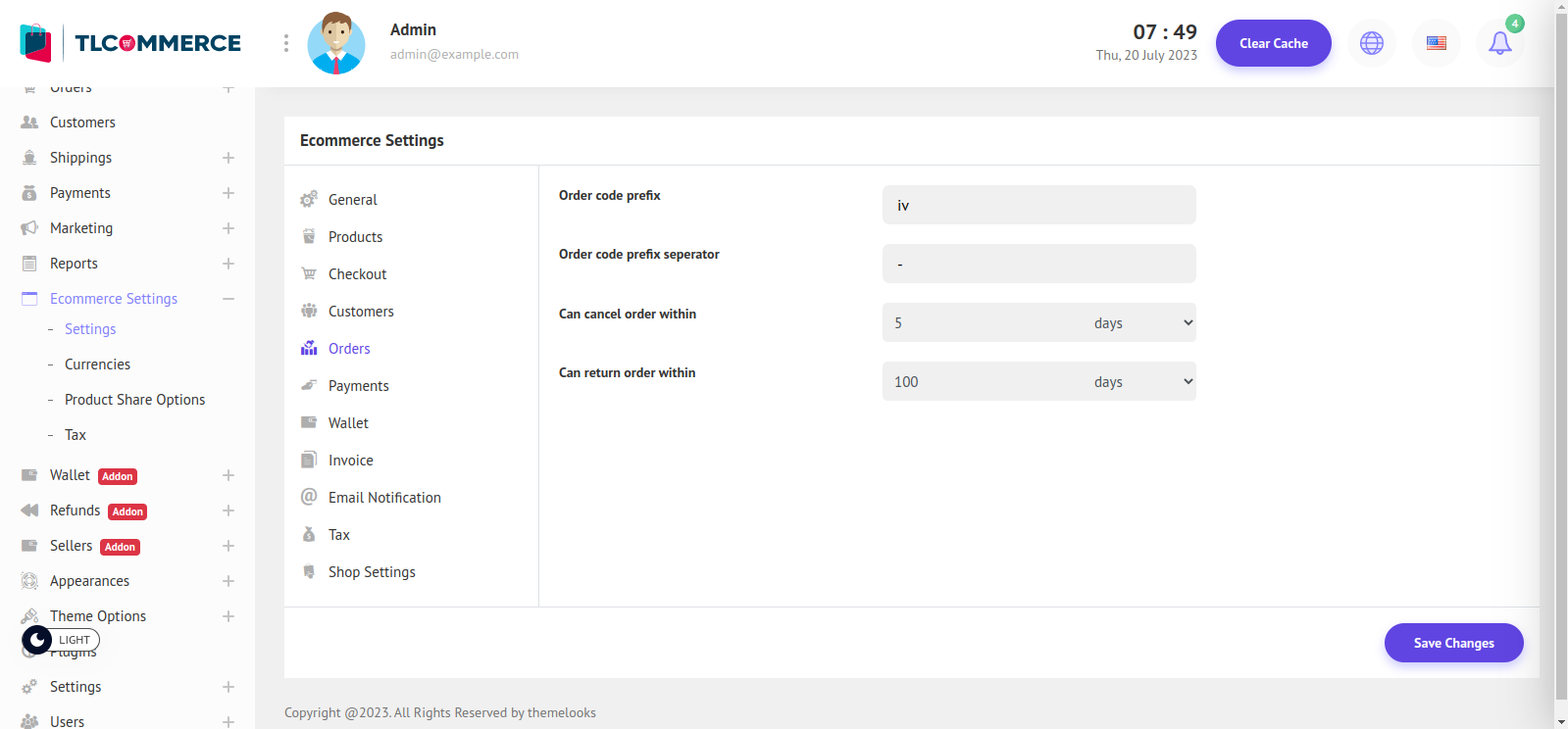 Order Code Prefix - You can set the order prefix here.