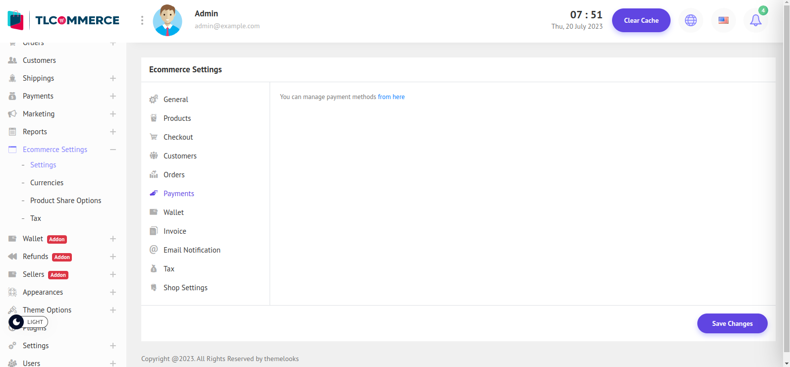 To manage payment methods click from here. It will redirect you to the payment methods page.