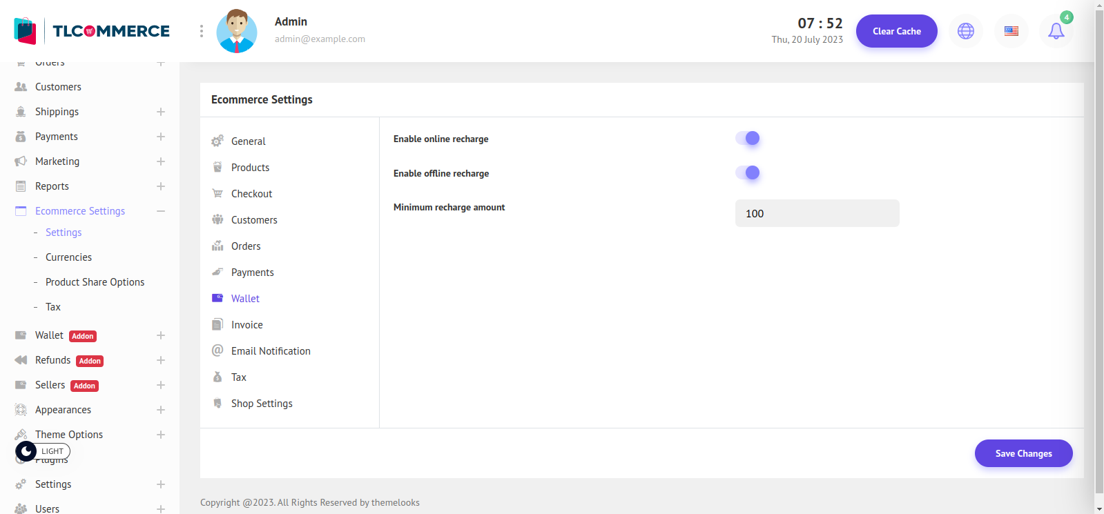 Minimum Recharge Amount - You can set the minimum recharge amount for the wallet.