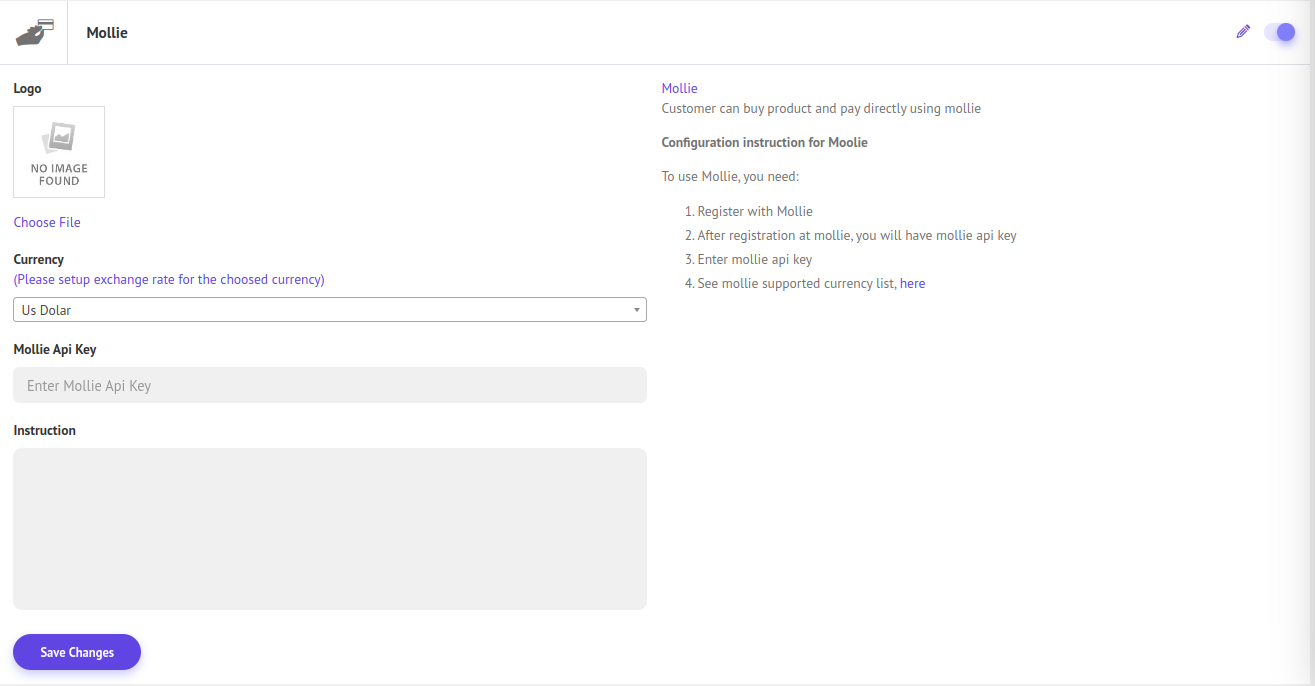 For the Mollie API key follow the link https://my.mollie.com/ and register. After registering, search for the API key inside the developer section. Now fill in the field and click save changes.